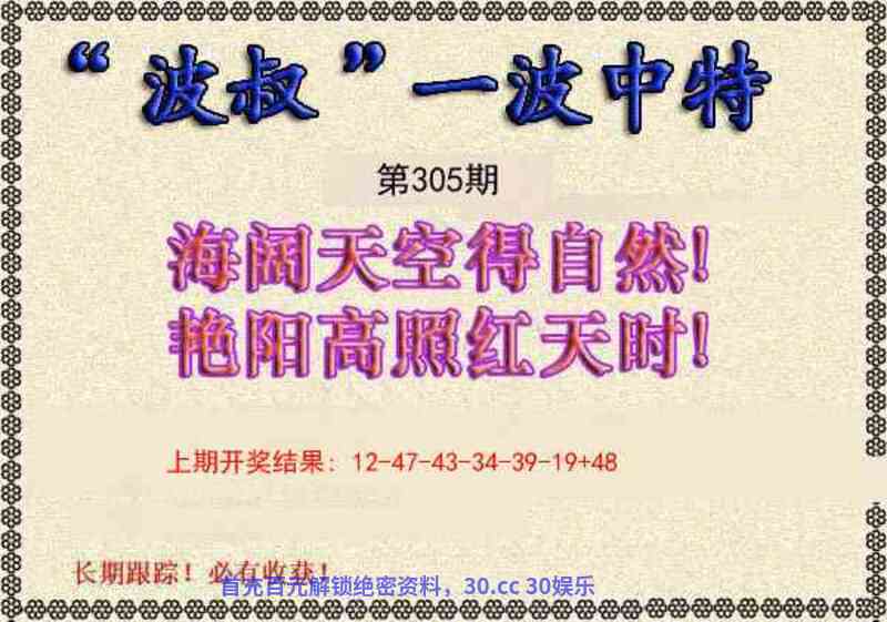 | 306期:一码 | 本资料版权已归30.cc娱乐城所有 | 立即投注 |